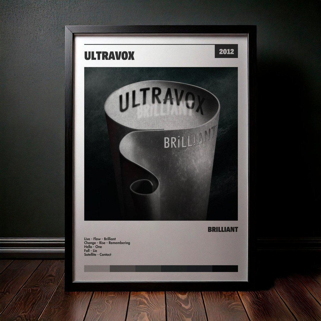 Nuestra colección de cuadros de Ultravox captura la esencia de sus álbumes más icónicos, presentados en un elegante estilo, en este caso te presentamos el de su disco Brilliant.