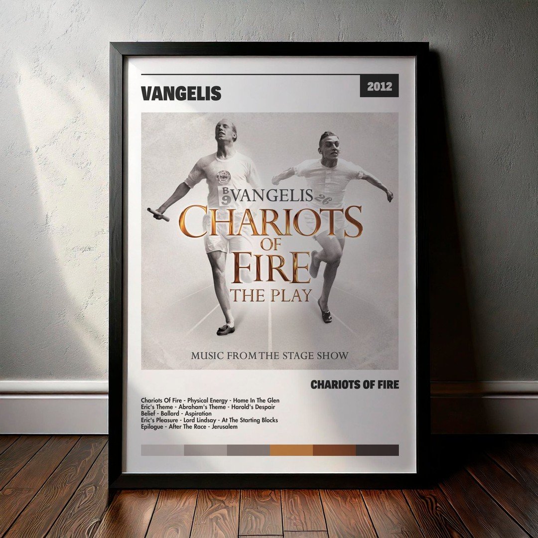 Nuestra colección de cuadros de Vangelis captura la esencia de sus álbumes más icónicos, presentados en un elegante estilo, en este caso te presentamos el de su disco Chariots Of Fire.