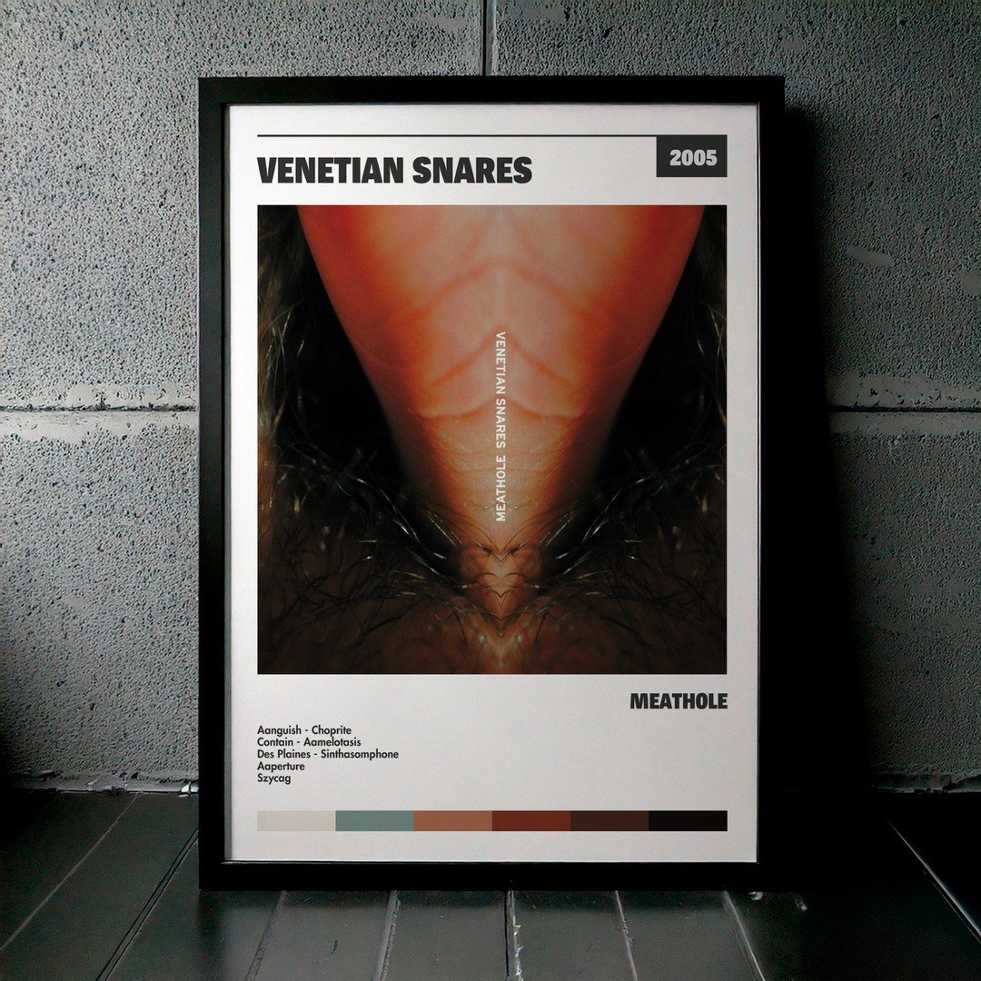 Nuestra colección de cuadros de Venetian Snares captura la esencia de sus álbumes más icónicos, presentados en un elegante estilo, en este caso te presentamos el de su disco Meathole.