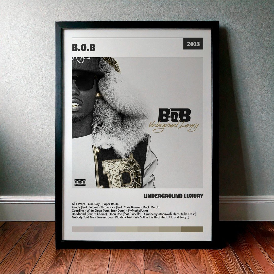 Nuestra colección de cuadros de B.o.B captura la esencia de sus álbumes más icónicos, presentados en un elegante estilo, en este caso te presentamos el de su disco Underground Luxury.