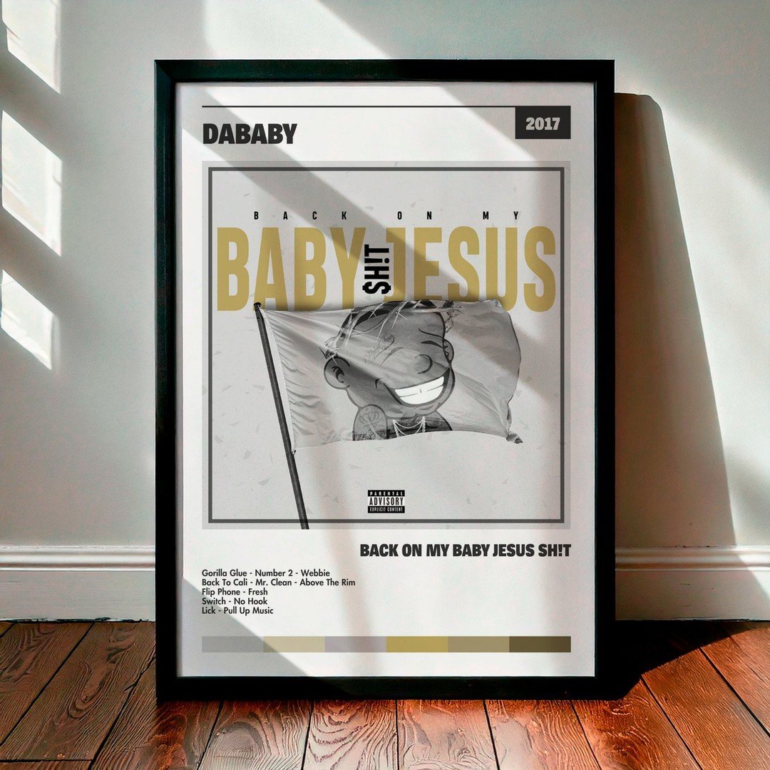 Nuestra colección de cuadros de DaBaby captura la esencia de sus álbumes más icónicos, presentados en un elegante estilo, en este caso te presentamos el de su disco Back On My Baby Jesus Sh!t.