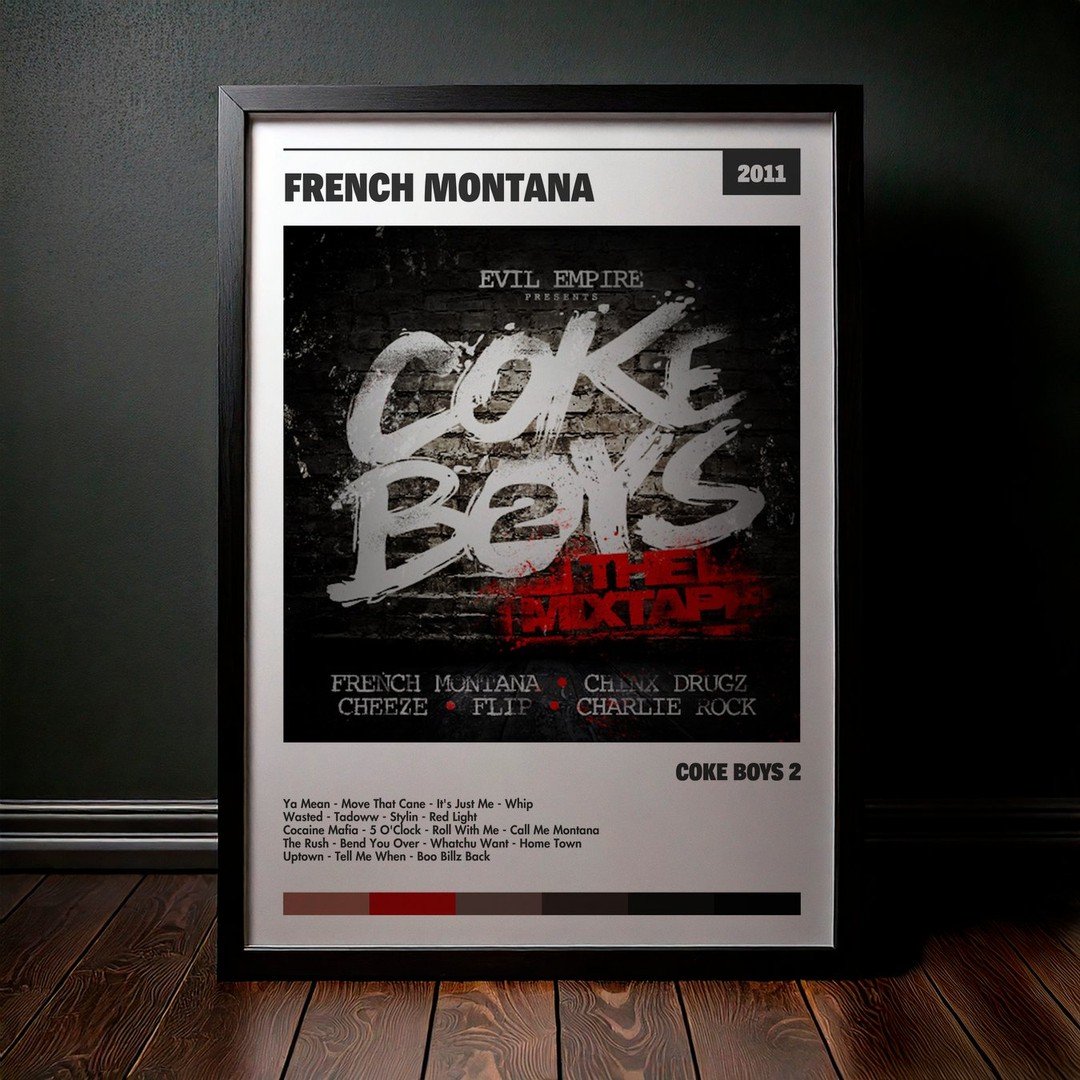 Nuestra colección de cuadros de French Montana captura la esencia de sus álbumes más icónicos, presentados en un elegante estilo, en este caso te presentamos el de su disco Coke Boys 2.