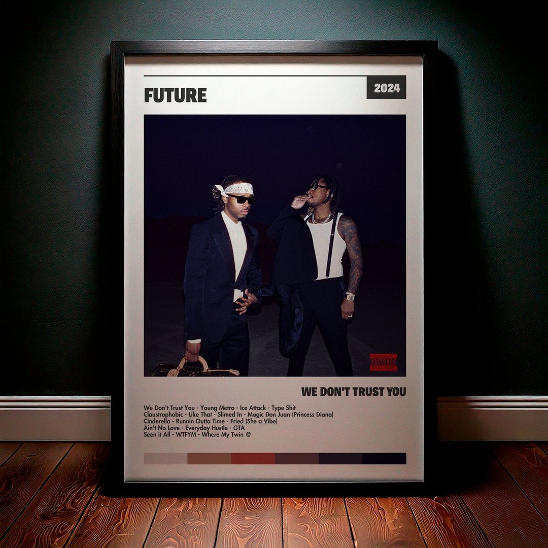 Nuestra colección de cuadros de Future captura la esencia de sus álbumes más icónicos, presentados en un elegante estilo, en este caso te presentamos el de su disco WE DON’T TRUST YOU.