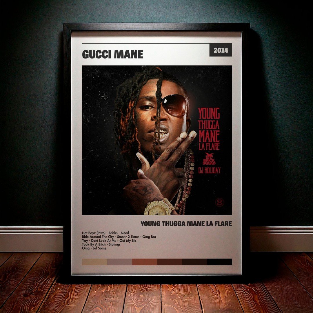 • Diseño Exclusivo: Cuadro de alta calidad basado en la portada del álbum Young Thugga Mane La Flare de Gucci Mane.