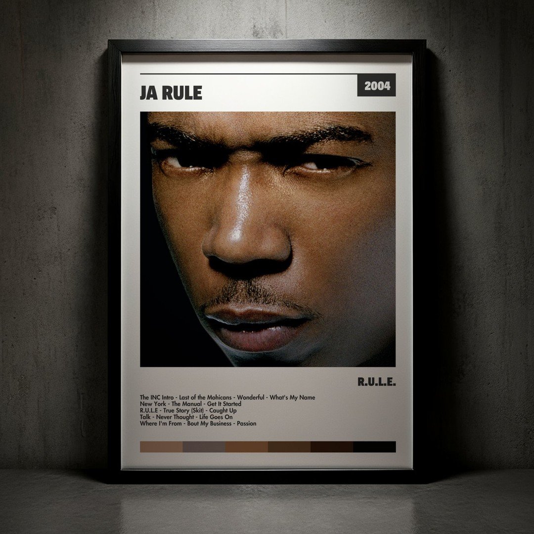 Nuestra colección de cuadros de Ja Rule captura la esencia de sus álbumes más icónicos, presentados en un elegante estilo, en este caso te presentamos el de su disco R.U.L.E..