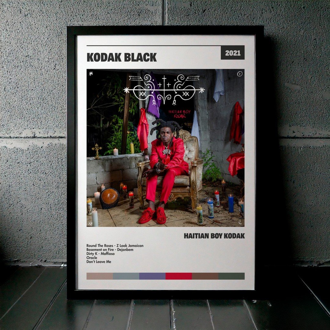 Nuestra colección de cuadros de Kodak Black captura la esencia de sus álbumes más icónicos, presentados en un elegante estilo, en este caso te presentamos el de su disco Haitian Boy Kodak.