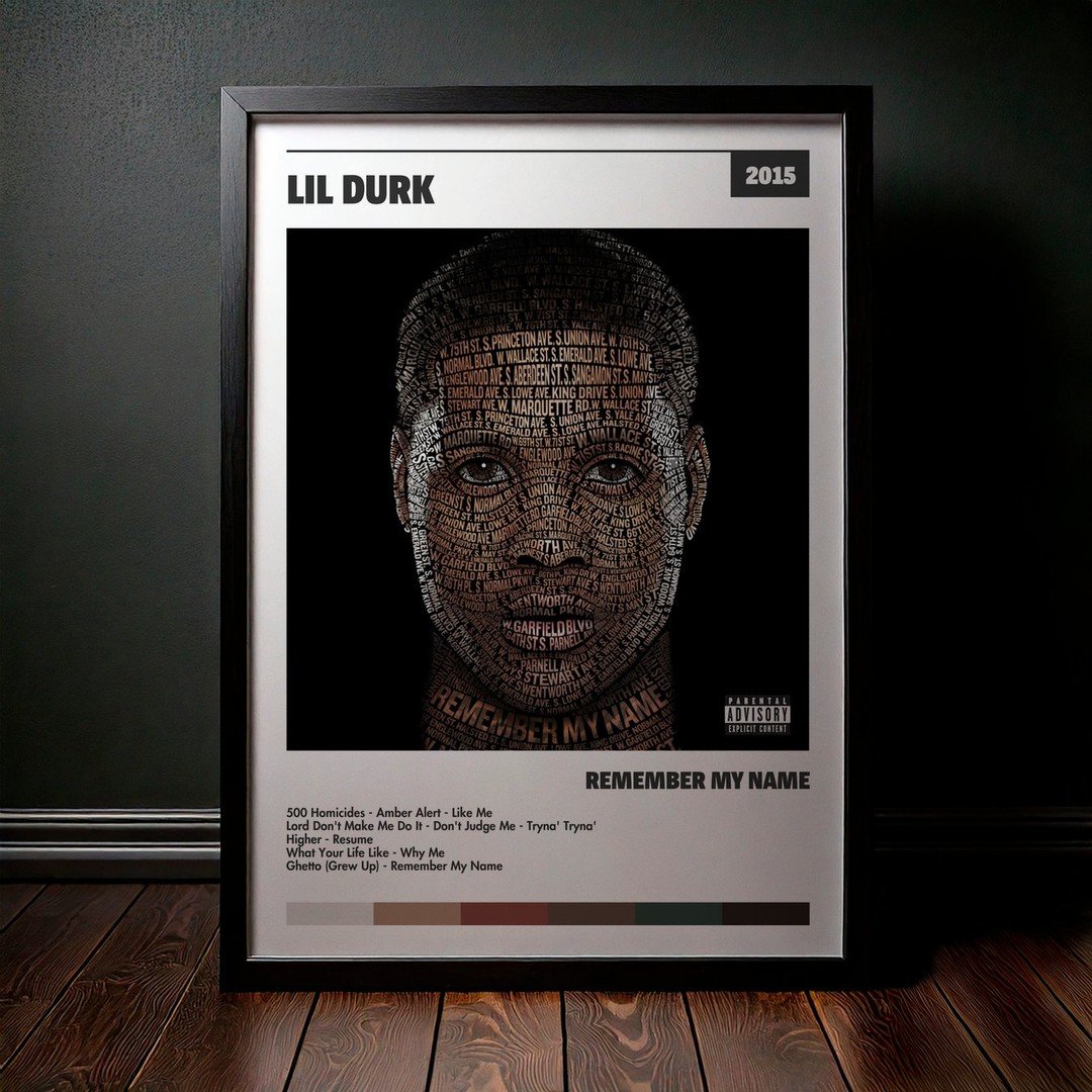 Nuestra colección de cuadros de Lil Durk captura la esencia de sus álbumes más icónicos, presentados en un elegante estilo, en este caso te presentamos el de su disco Remember My Name.