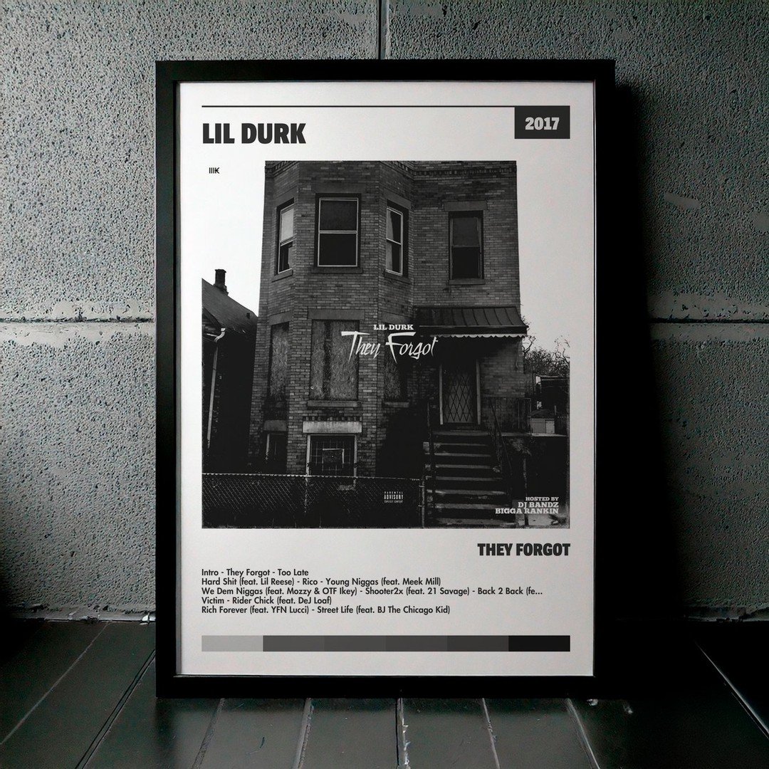 Nuestra colección de cuadros de Lil Durk captura la esencia de sus álbumes más icónicos, presentados en un elegante estilo, en este caso te presentamos el de su disco They Forgot.