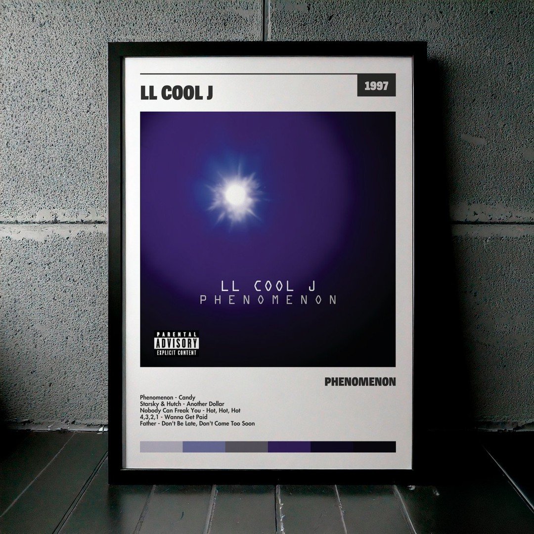 Nuestra colección de cuadros de LL COOL J captura la esencia de sus álbumes más icónicos, presentados en un elegante estilo, en este caso te presentamos el de su disco Phenomenon.