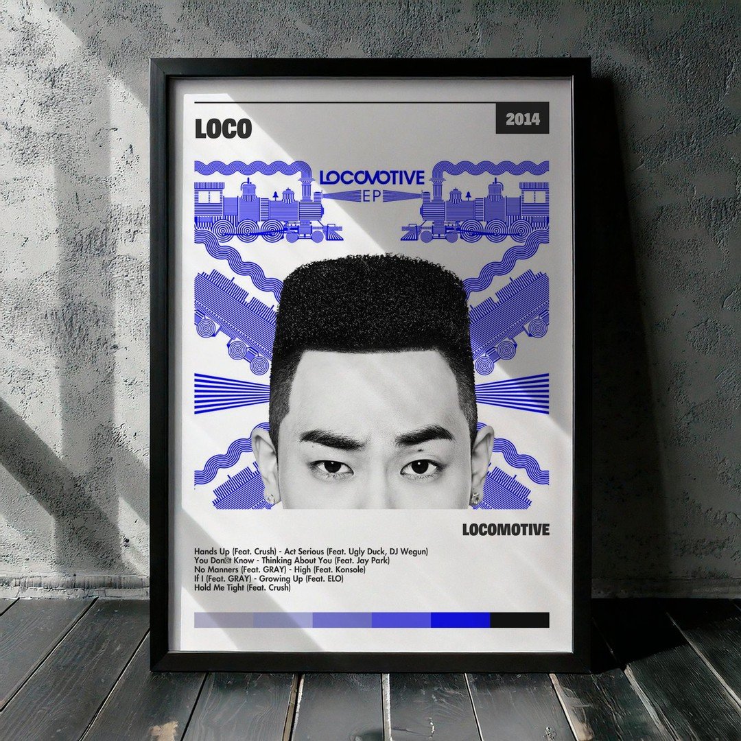 Nuestra colección de cuadros de Loco captura la esencia de sus álbumes más icónicos, presentados en un elegante estilo, en este caso te presentamos el de su disco LOCOMOTIVE.