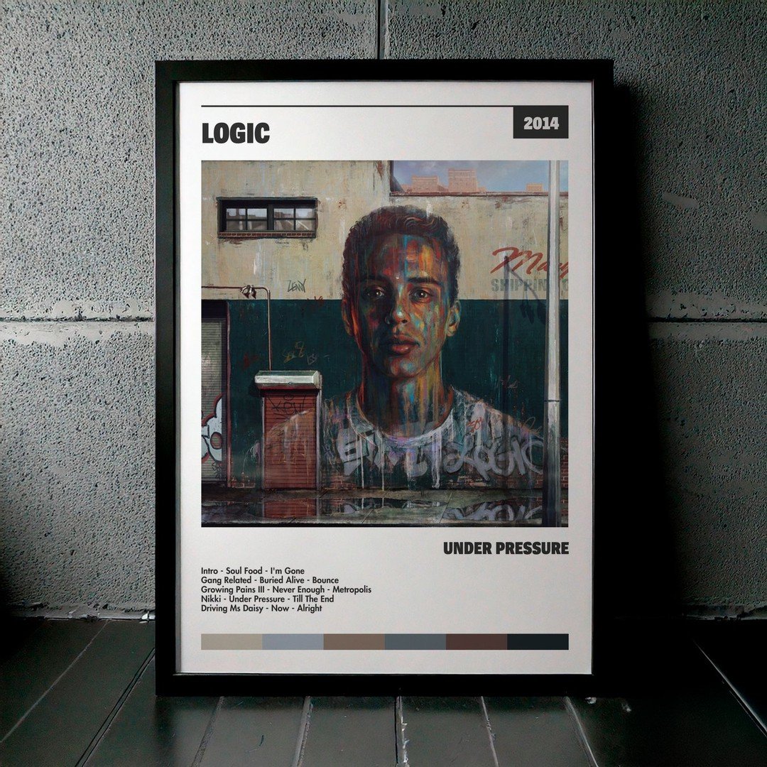 Nuestra colección de cuadros de Logic captura la esencia de sus álbumes más icónicos, presentados en un elegante estilo, en este caso te presentamos el de su disco Under Pressure.