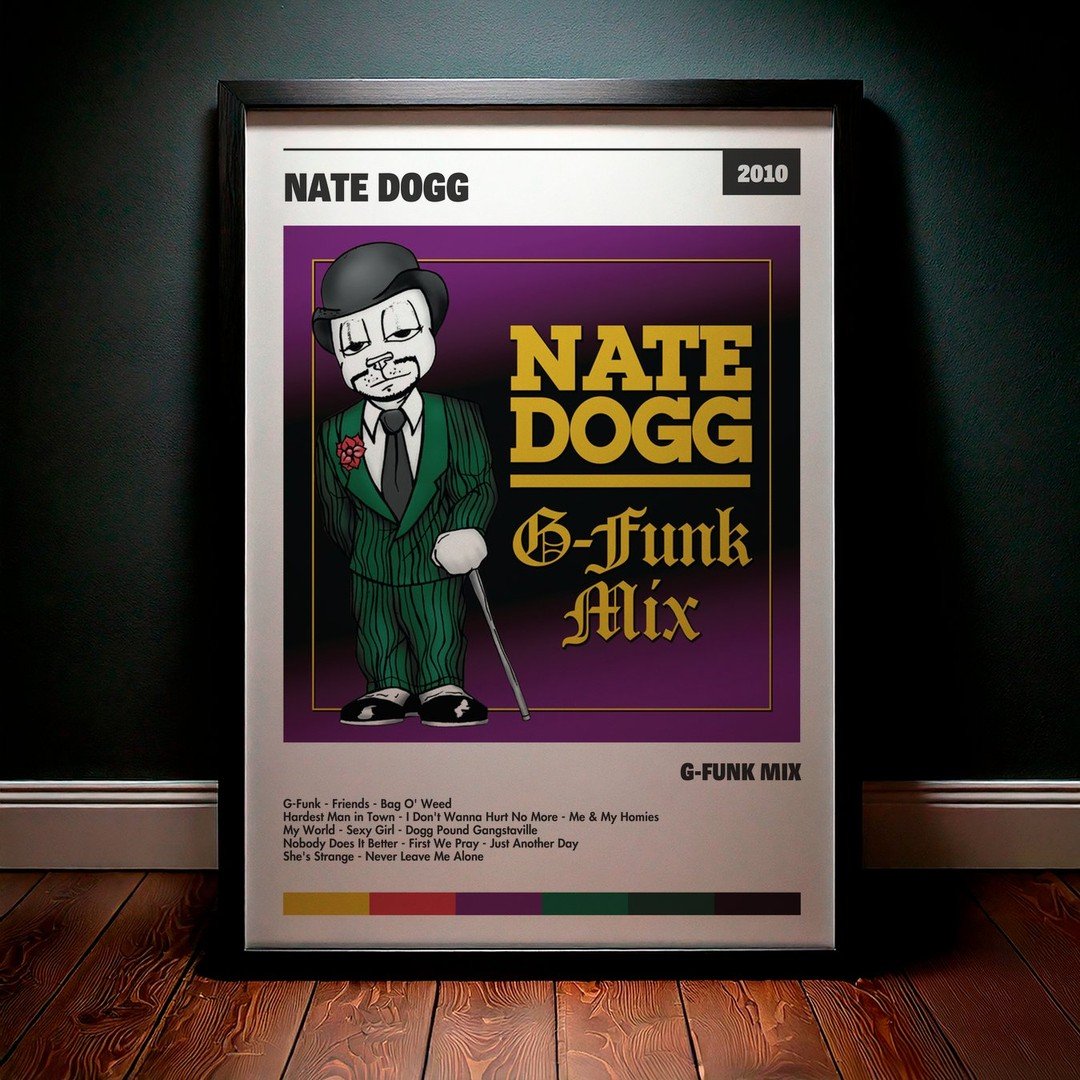 • Diseño Exclusivo: Cuadro de alta calidad basado en la portada del álbum G-Funk Mix de Nate Dogg.