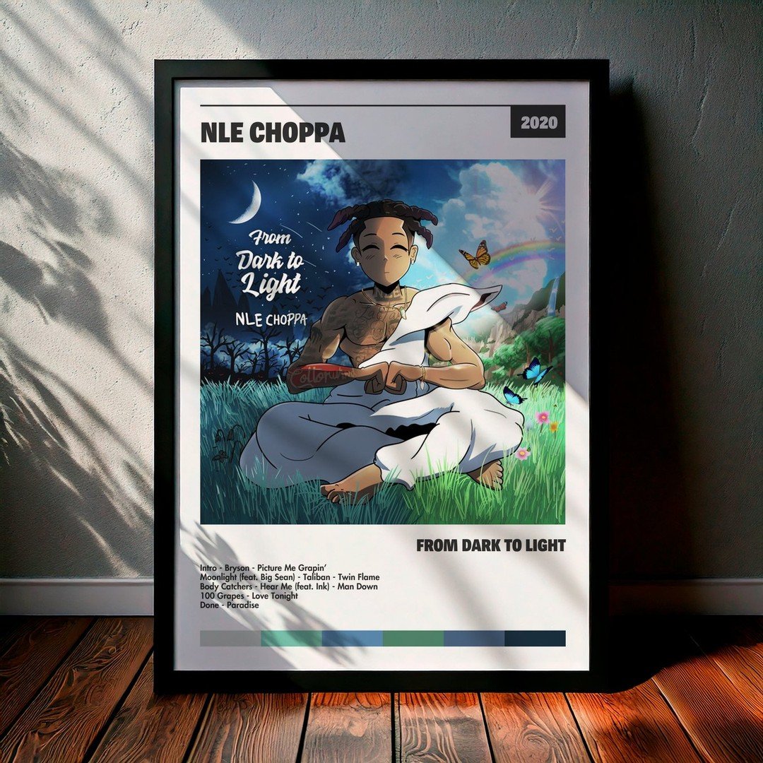 • Diseño Exclusivo: Cuadro de alta calidad basado en la portada del álbum From Dark to Light de NLE Choppa.