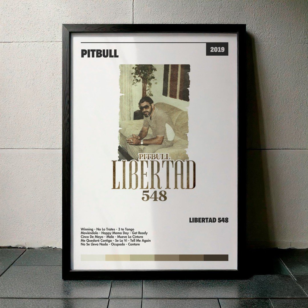 Nuestra colección de cuadros de Pitbull captura la esencia de sus álbumes más icónicos, presentados en un elegante estilo, en este caso te presentamos el de su disco Libertad 548.