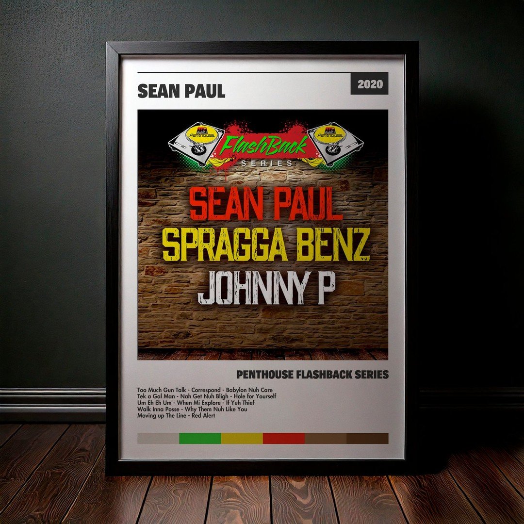 Nuestra colección de cuadros de Sean Paul captura la esencia de sus álbumes más icónicos, presentados en un elegante estilo, en este caso te presentamos el de su disco Penthouse Flashback Series.