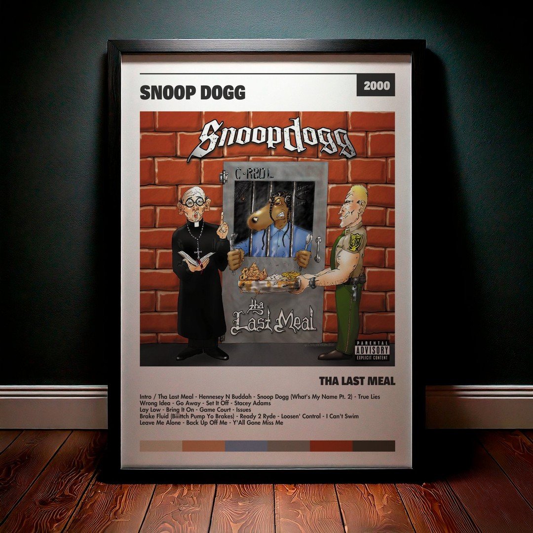 Nuestra colección de cuadros de Snoop Dogg captura la esencia de sus álbumes más icónicos, presentados en un elegante estilo, en este caso te presentamos el de su disco Tha Last Meal.