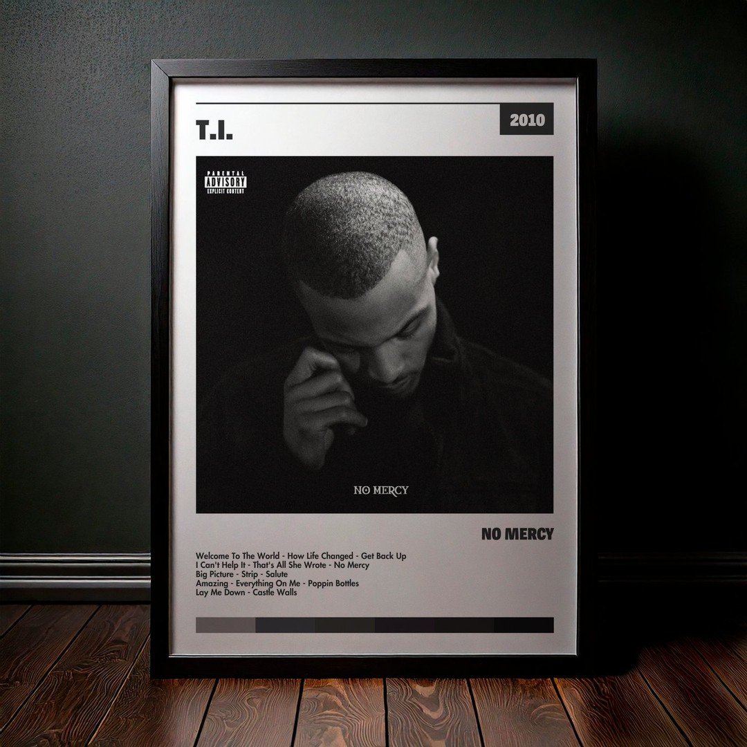 Nuestra colección de cuadros de T.I. captura la esencia de sus álbumes más icónicos, presentados en un elegante estilo, en este caso te presentamos el de su disco No Mercy.