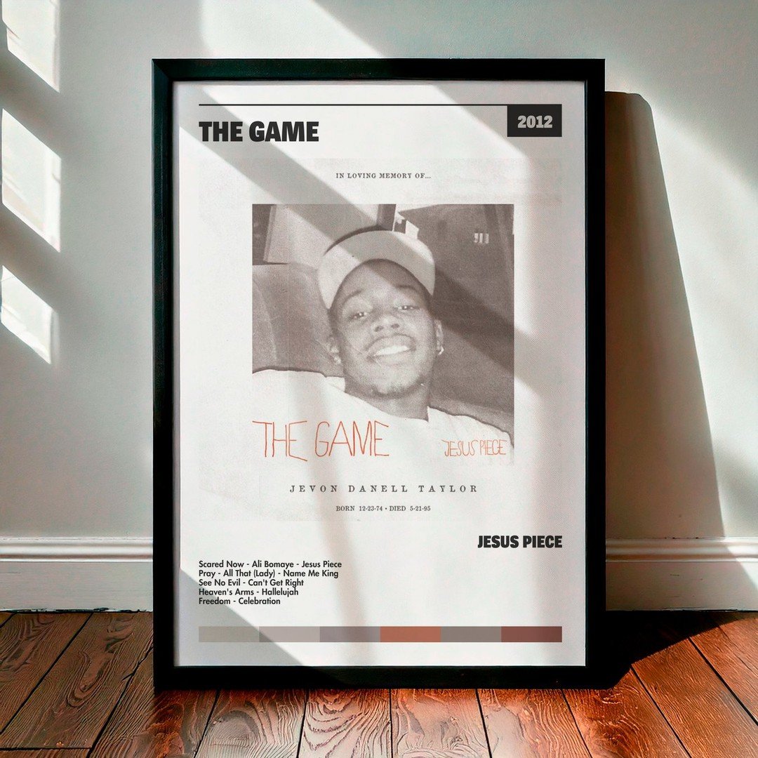 Nuestra colección de cuadros de The Game captura la esencia de sus álbumes más icónicos, presentados en un elegante estilo, en este caso te presentamos el de su disco Jesus Piece.