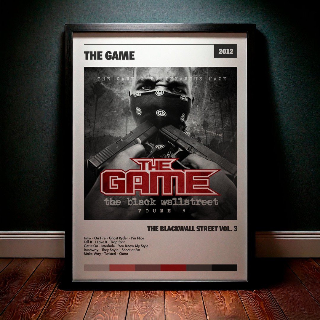 Nuestra colección de cuadros de The Game captura la esencia de sus álbumes más icónicos, presentados en un elegante estilo, en este caso te presentamos el de su disco The Blackwall Street Vol. 3.