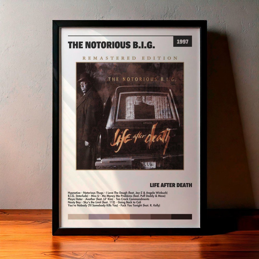 • Diseño Exclusivo: Cuadro de alta calidad basado en la portada del álbum Life After Death de The Notorious B.I.G..