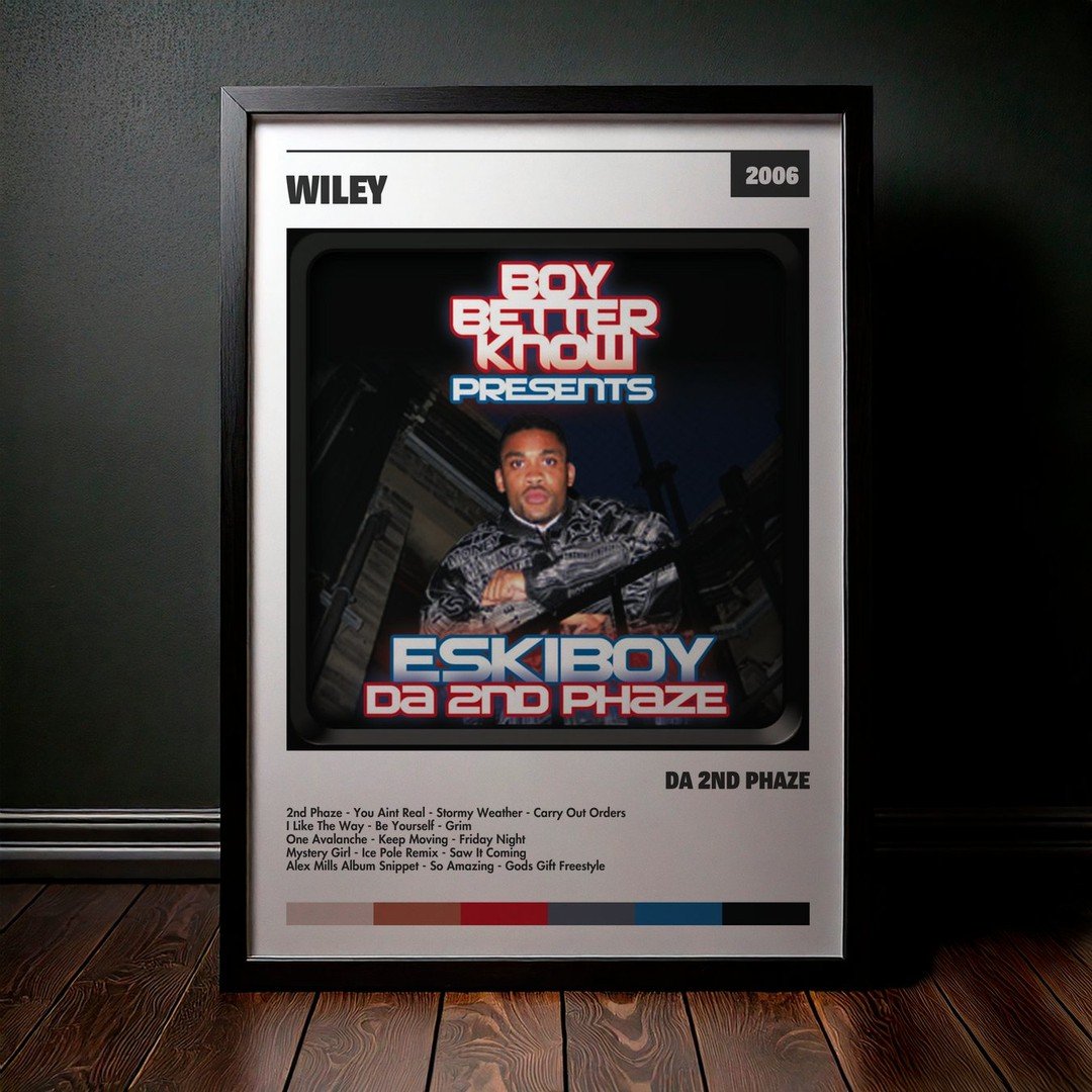 Nuestra colección de cuadros de Wiley captura la esencia de sus álbumes más icónicos, presentados en un elegante estilo, en este caso te presentamos el de su disco Da 2nd Phaze.