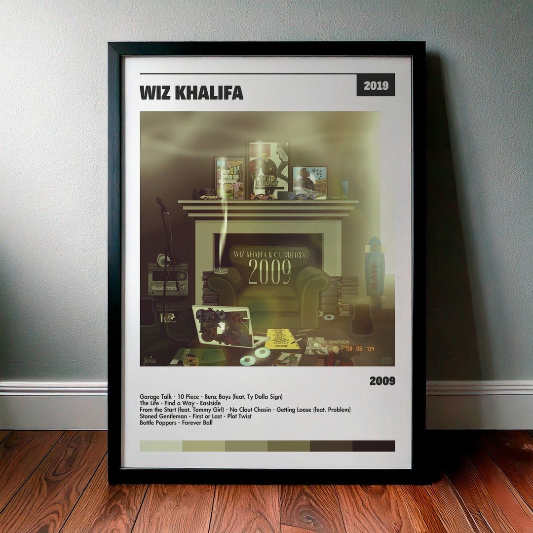 Nuestra colección de cuadros de Wiz Khalifa captura la esencia de sus álbumes más icónicos, presentados en un elegante estilo, en este caso te presentamos el de su disco 2009.