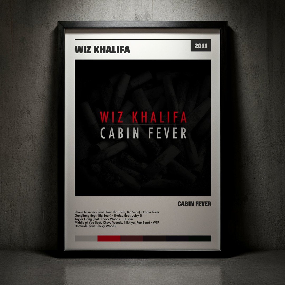 Nuestra colección de cuadros de Wiz Khalifa captura la esencia de sus álbumes más icónicos, presentados en un elegante estilo, en este caso te presentamos el de su disco Cabin Fever.