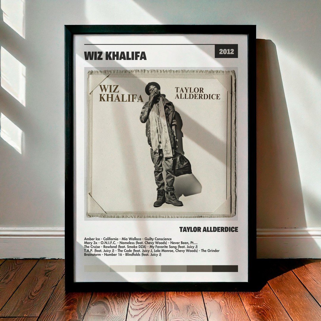 Nuestra colección de cuadros de Wiz Khalifa captura la esencia de sus álbumes más icónicos, presentados en un elegante estilo, en este caso te presentamos el de su disco Taylor Allderdice.