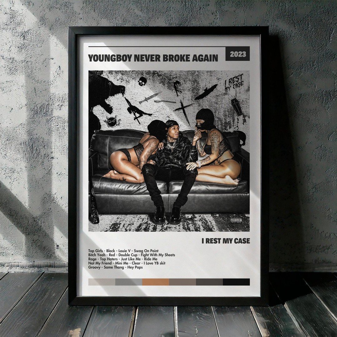 Nuestra colección de cuadros de YoungBoy Never Broke Again captura la esencia de sus álbumes más icónicos, presentados en un elegante estilo, en este caso te presentamos el de su disco I Rest My Case.