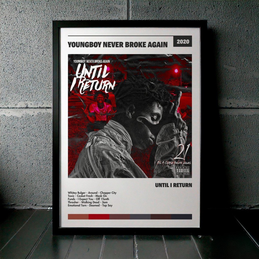 Nuestra colección de cuadros de YoungBoy Never Broke Again captura la esencia de sus álbumes más icónicos, presentados en un elegante estilo, en este caso te presentamos el de su disco Until I Return.