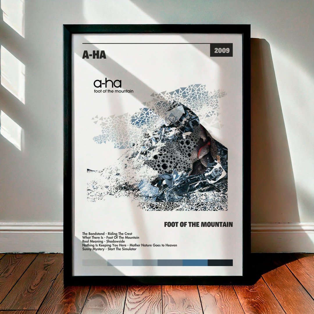Nuestra colección de cuadros de A-ha captura la esencia de sus álbumes más icónicos, presentados en un elegante estilo, en este caso te presentamos el de su disco Foot Of The Mountain.