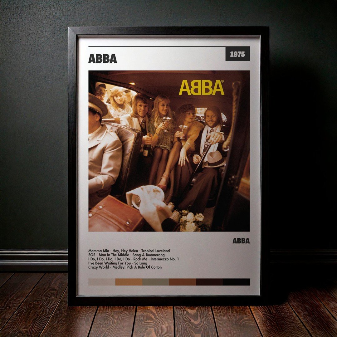 Nuestra colección de cuadros de ABBA captura la esencia de sus álbumes más icónicos, presentados en un elegante estilo, en este caso te presentamos el de su disco Abba.