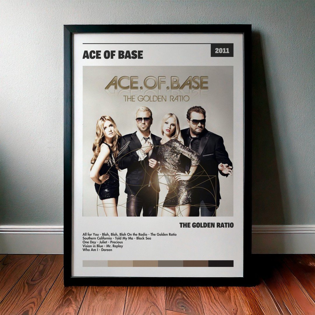 Nuestra colección de cuadros de Ace of Base captura la esencia de sus álbumes más icónicos, presentados en un elegante estilo, en este caso te presentamos el de su disco The Golden Ratio.
