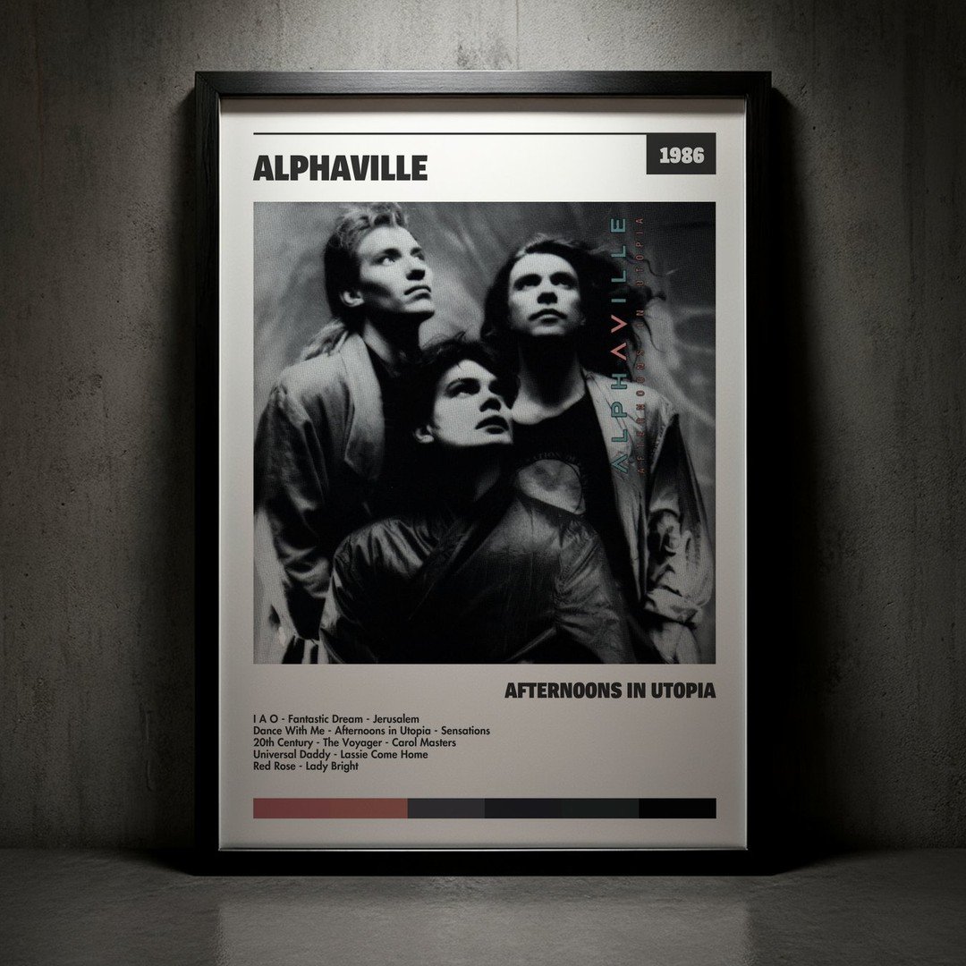 Nuestra colección de cuadros de Alphaville captura la esencia de sus álbumes más icónicos, presentados en un elegante estilo, en este caso te presentamos el de su disco Afternoons in Utopia.