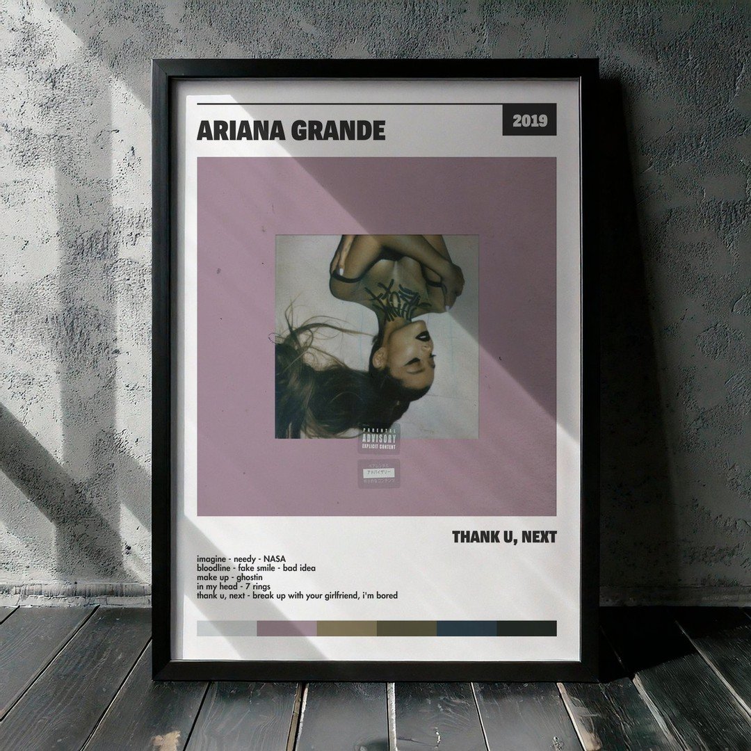 Diseño Exclusivo: Cuadro de alta calidad basado en la portada del álbum thank u, next de Ariana Grande.