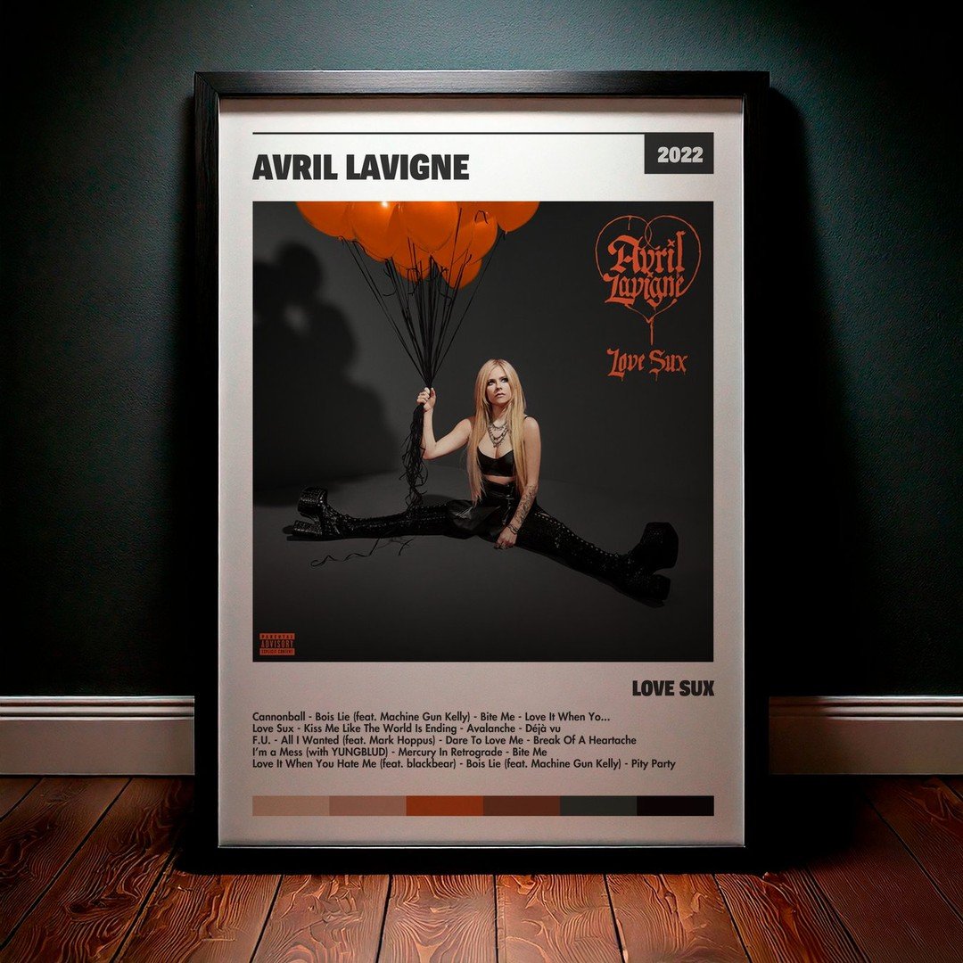 • Diseño Exclusivo: Cuadro de alta calidad basado en la portada del álbum Love Sux de Avril Lavigne.