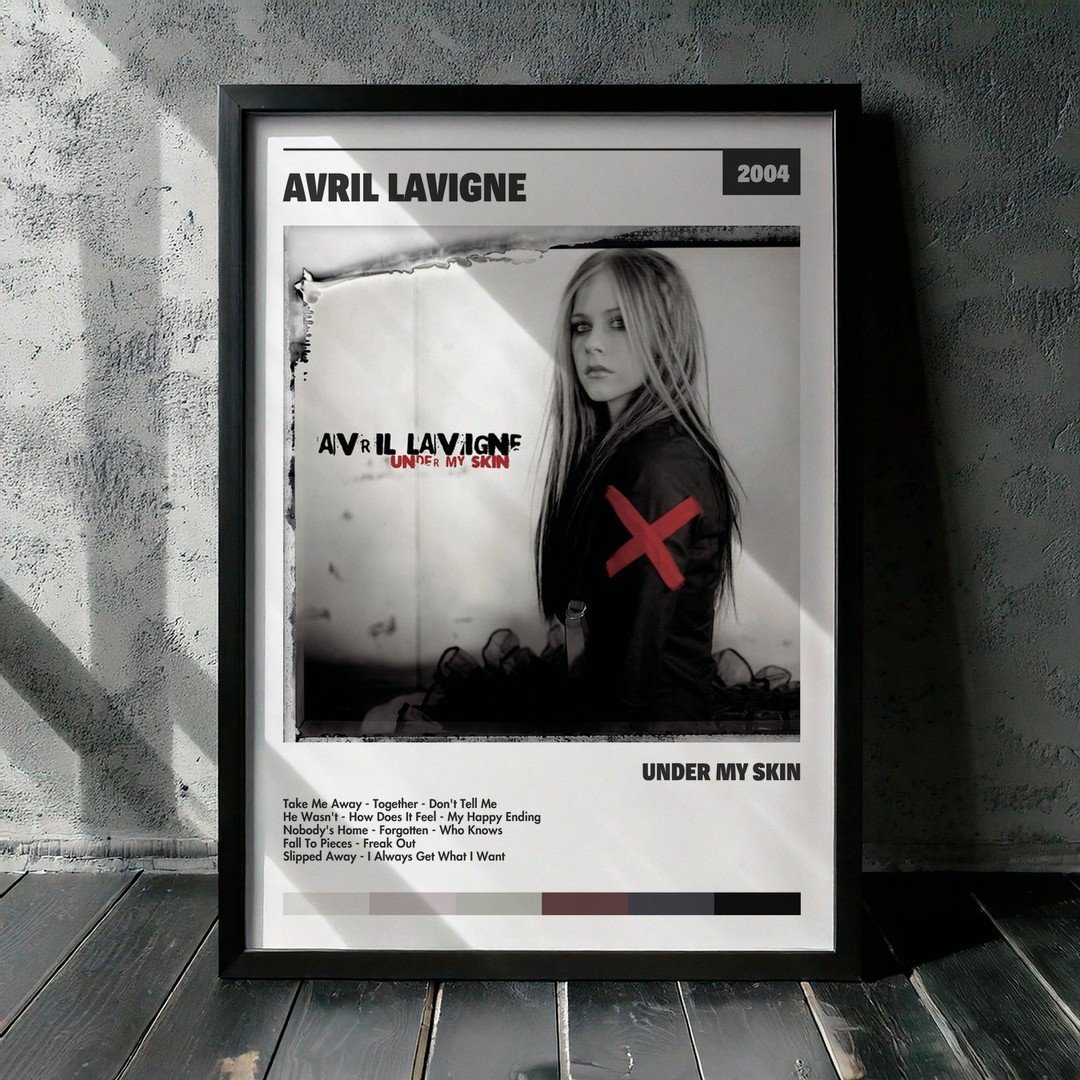 Nuestra colección de cuadros de Avril Lavigne captura la esencia de sus álbumes más icónicos, presentados en un elegante estilo, en este caso te presentamos el de su disco Under My Skin.