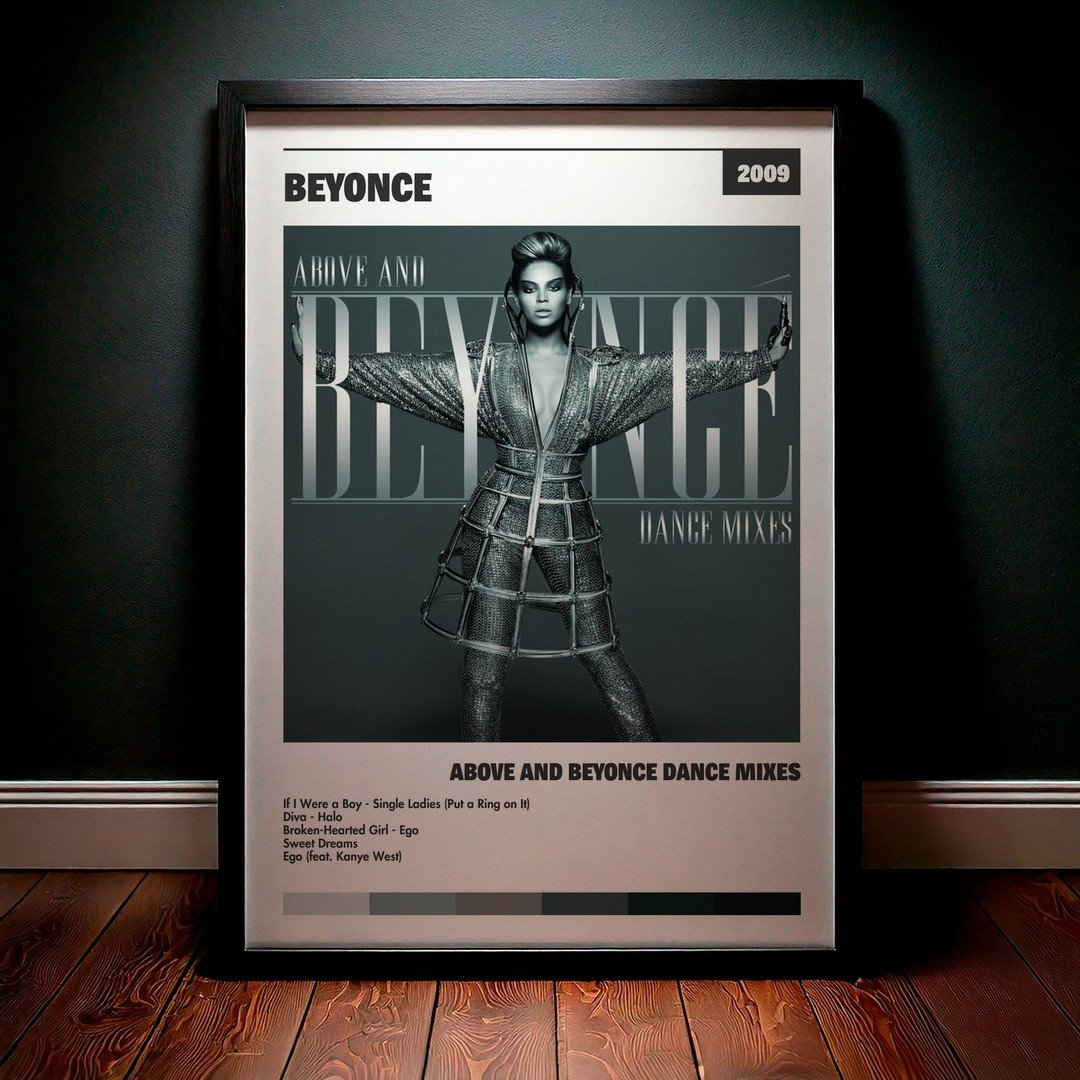 • Diseño Exclusivo: Cuadro de alta calidad basado en la portada del álbum Above And Beyoncé Dance Mixes de Beyoncé.