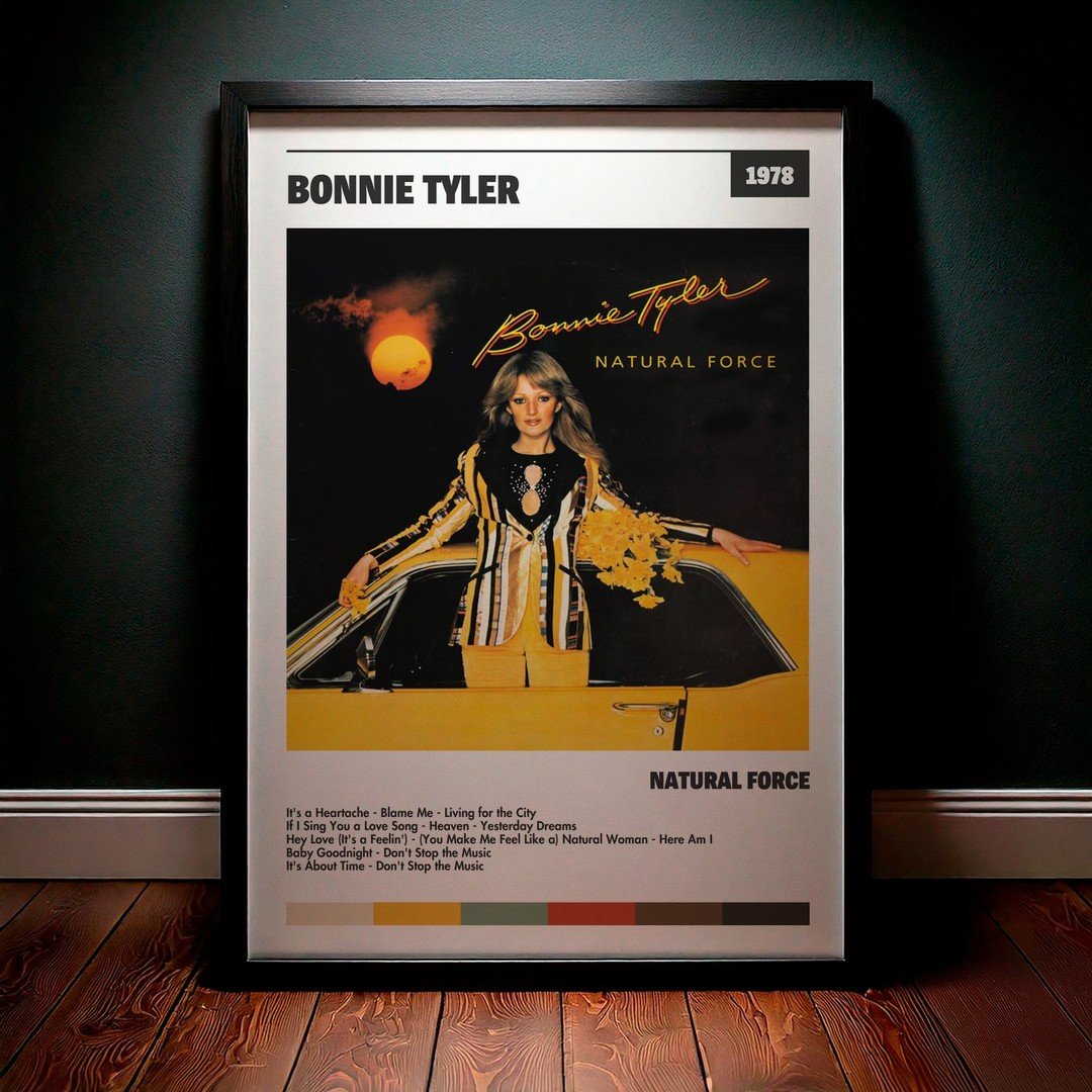 Nuestra colección de cuadros de Bonnie Tyler captura la esencia de sus álbumes más icónicos, presentados en un elegante estilo, en este caso te presentamos el de su disco Natural Force.