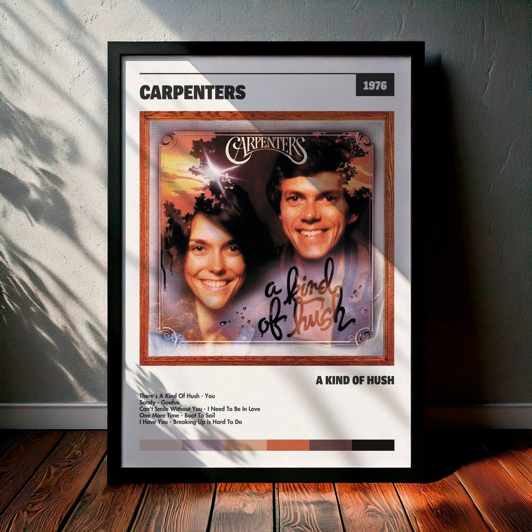 Nuestra colección de cuadros de Carpenters captura la esencia de sus álbumes más icónicos, presentados en un elegante estilo, en este caso te presentamos el de su disco A Kind Of Hush.