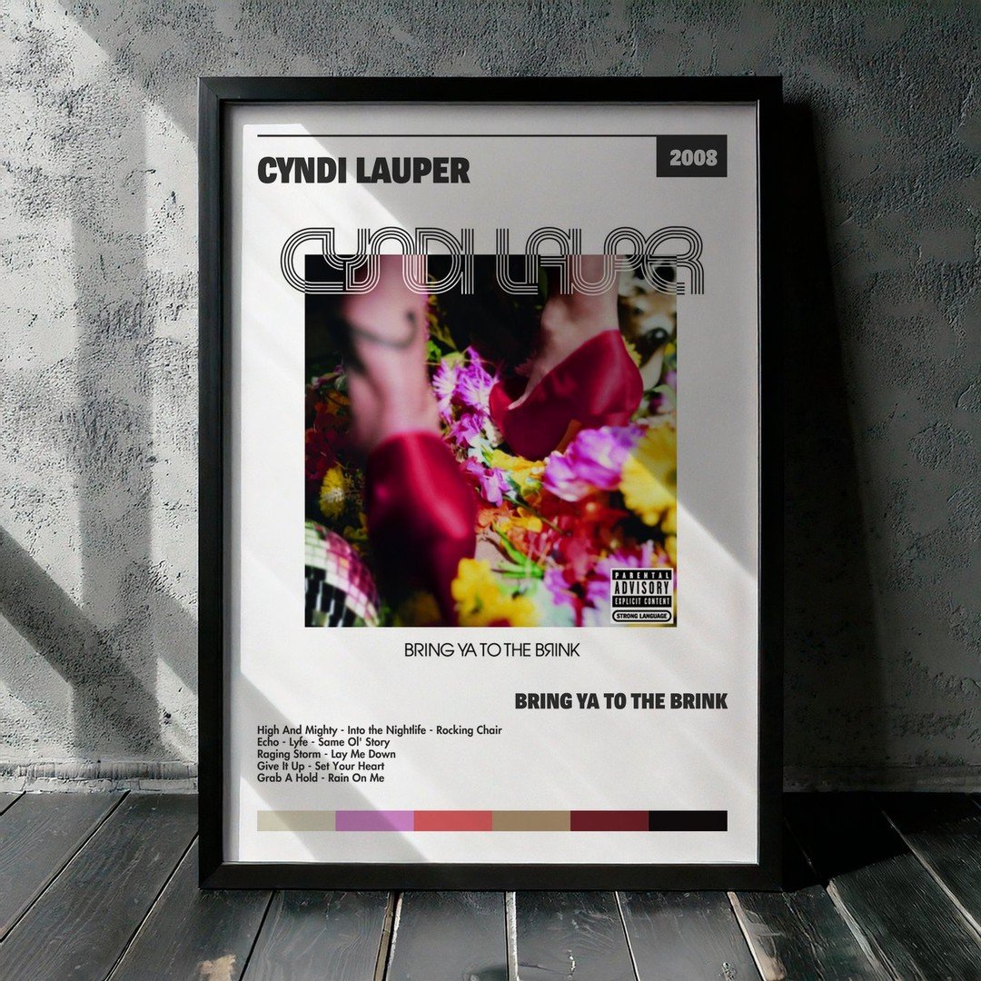 Nuestra colección de cuadros de Cyndi Lauper captura la esencia de sus álbumes más icónicos, presentados en un elegante estilo, en este caso te presentamos el de su disco Bring Ya To The Brink.