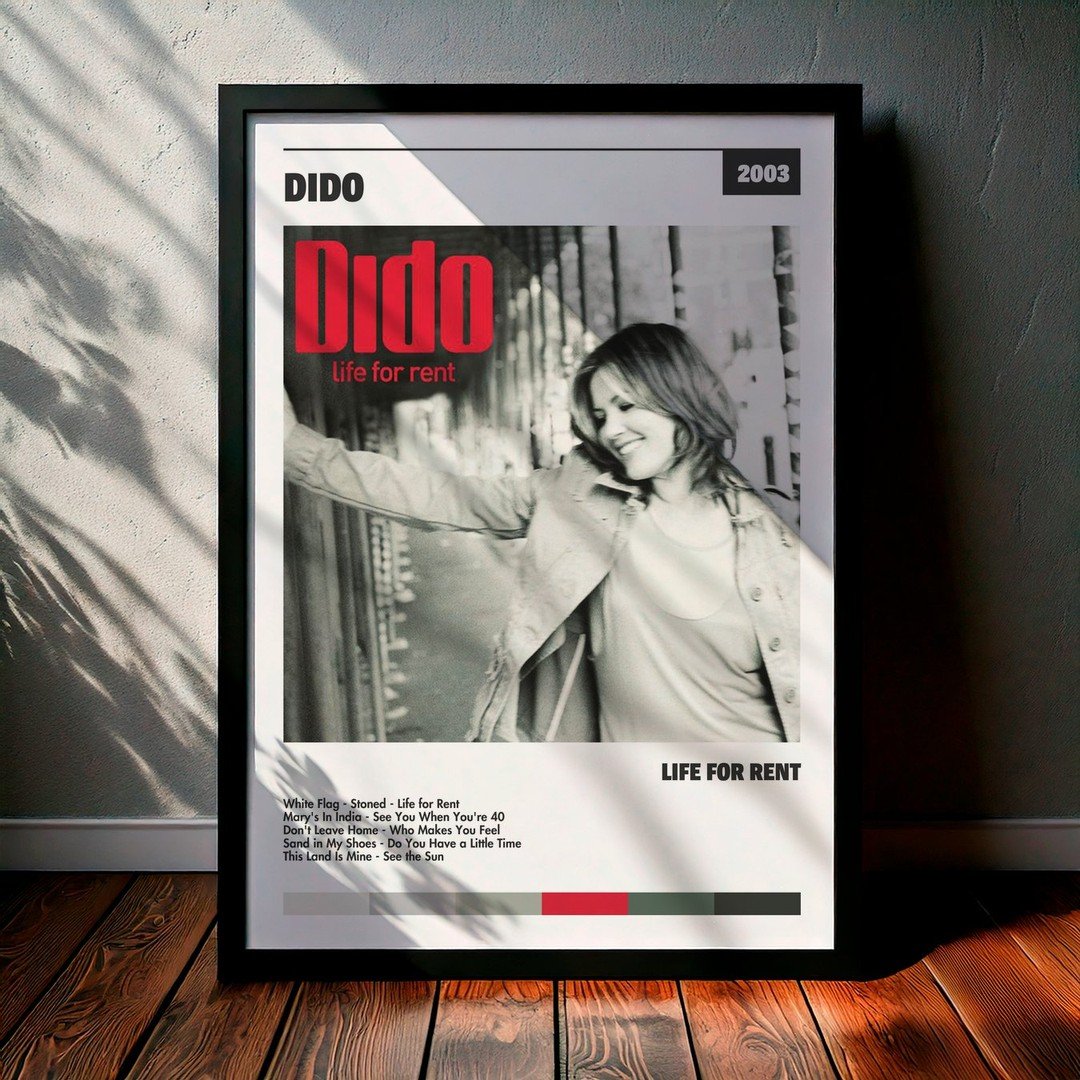 Nuestra colección de cuadros de Dido captura la esencia de sus álbumes más icónicos, presentados en un elegante estilo, en este caso te presentamos el de su disco Life For Rent.