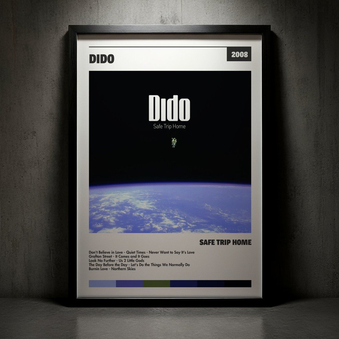 Nuestra colección de cuadros de Dido captura la esencia de sus álbumes más icónicos, presentados en un elegante estilo, en este caso te presentamos el de su disco Safe Trip Home.