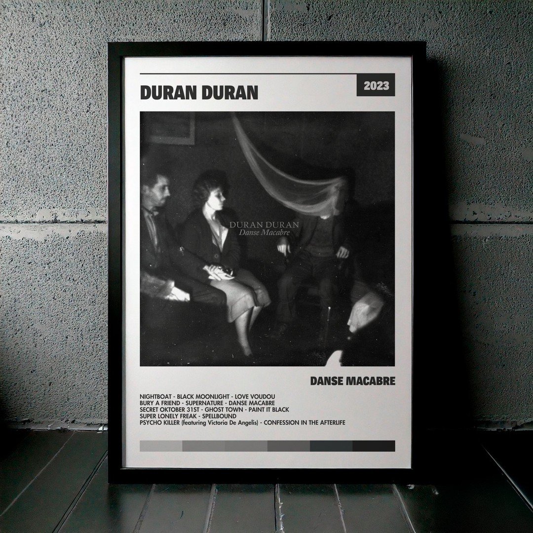 Nuestra colección de cuadros de Duran Duran captura la esencia de sus álbumes más icónicos, presentados en un elegante estilo, en este caso te presentamos el de su disco DANSE MACABRE.