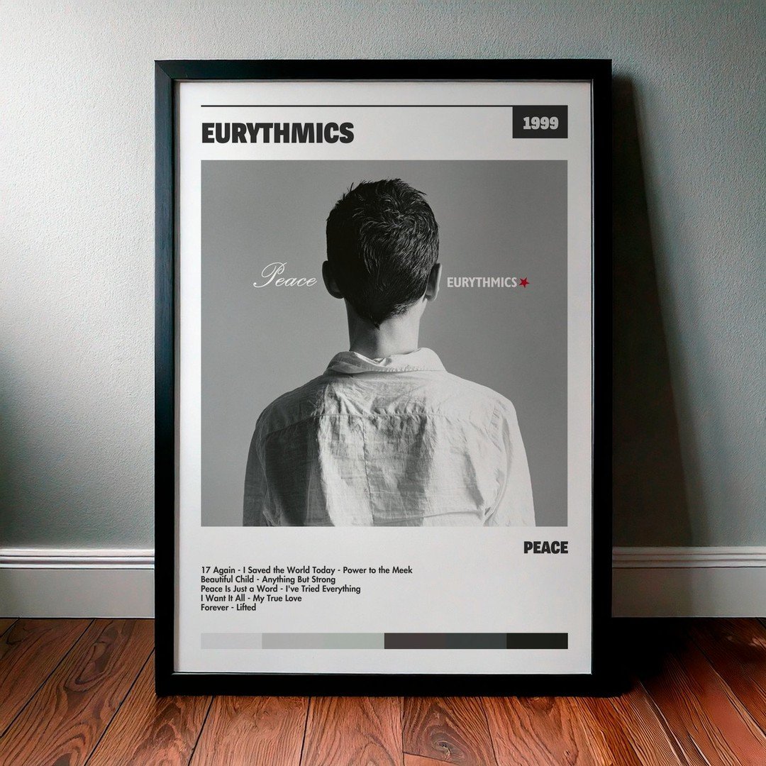 Nuestra colección de cuadros de Eurythmics captura la esencia de sus álbumes más icónicos, presentados en un elegante estilo, en este caso te presentamos el de su disco Peace.