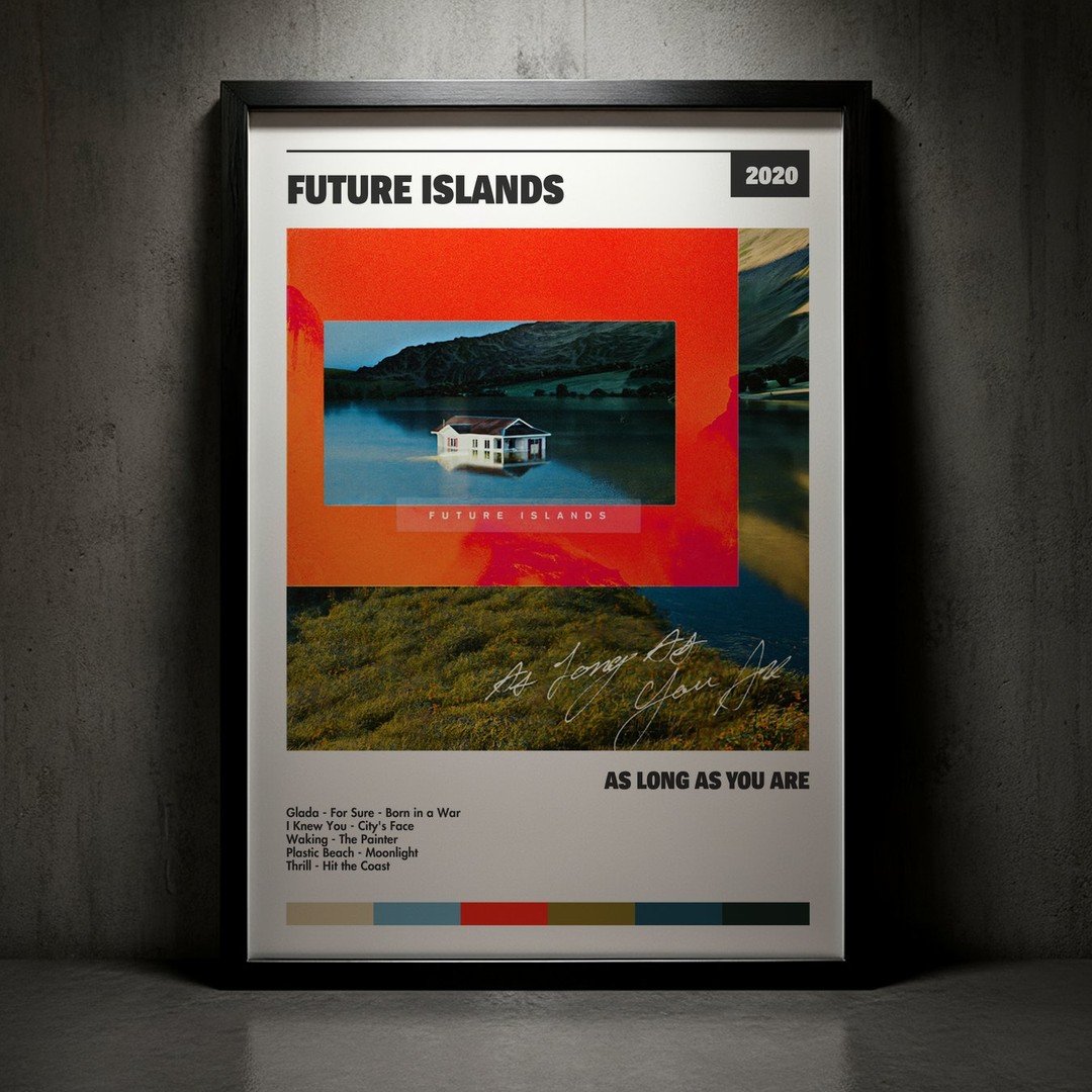 Nuestra colección de cuadros de Future Islands captura la esencia de sus álbumes más icónicos, presentados en un elegante estilo, en este caso te presentamos el de su disco As Long As You Are.