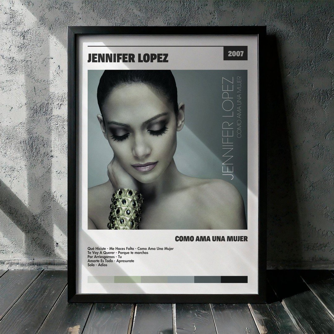 • Diseño Exclusivo: Cuadro de alta calidad basado en la portada del álbum Como Ama Una Mujer de Jennifer Lopez.