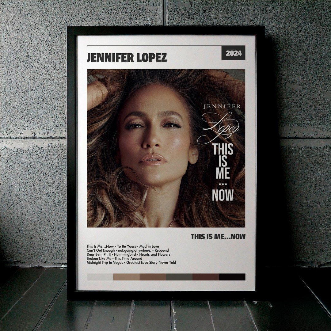 Nuestra colección de cuadros de Jennifer Lopez captura la esencia de sus álbumes más icónicos, presentados en un elegante estilo, en este caso te presentamos el de su disco This Is Me…Now.