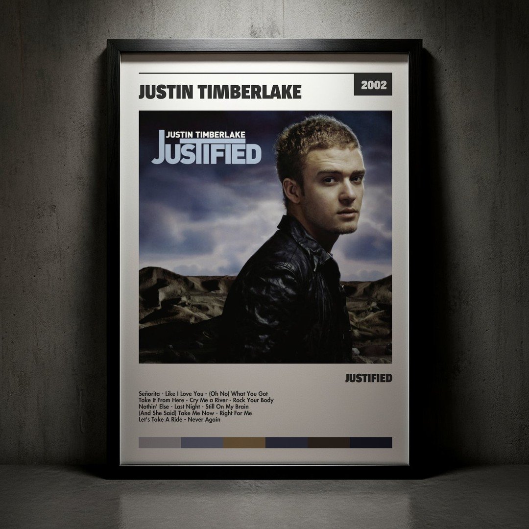 Nuestra colección de cuadros de Justin Timberlake captura la esencia de sus álbumes más icónicos, presentados en un elegante estilo, en este caso te presentamos el de su disco Justified.