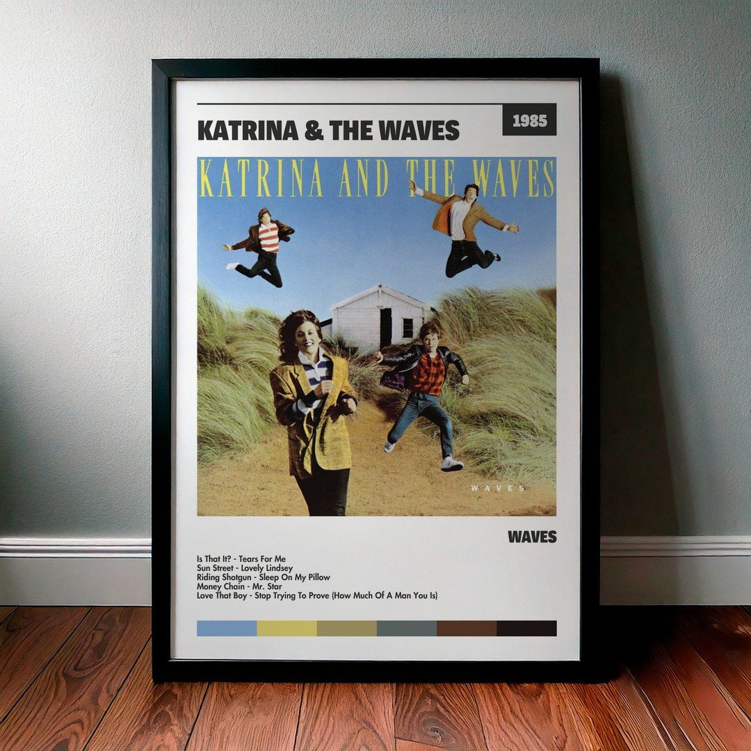 Nuestra colección de cuadros de Katrina & The Waves captura la esencia de sus álbumes más icónicos, presentados en un elegante estilo, en este caso te presentamos el de su disco Waves.